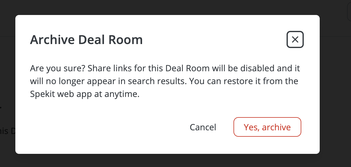 A notification will appear at the bottom of the screen confirming the Deal Room has been archived. You can access archived Deal Rooms in the Archived tab.