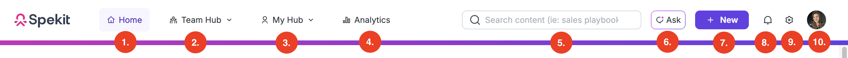 The top navigation bar is always visible, allowing you to jump between core pillars of the Spekit platform: